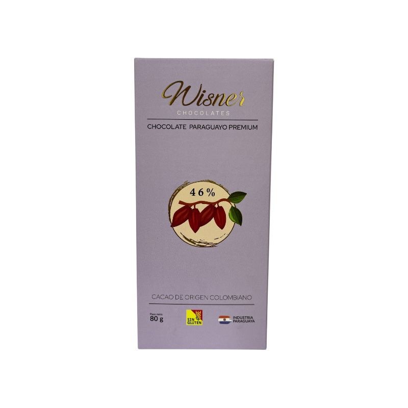Chocolate paraguayo 46% de cacao origen colombiano, sabor suave y dulce. Sin ingredientes que contengan gluten.